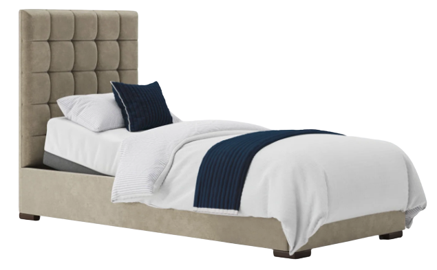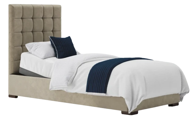 This bedstead really stands out with the deep padded headboard and stylish wood feet. We love how many beautiful fabrics and colours are available with this bed.