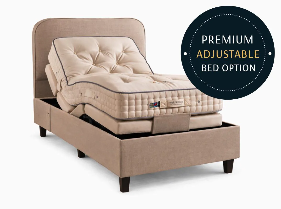 This adjustable bed is one of the best examples of premium design and finish on the UK bed market. Vispring offers not only the best pocket sprung divan but the added benefit of adjustable five fold action, any Vispring headboard and mattress with the full range of luxury fabrics. This leading British brand offers the Serenity adjustable bed in small single and standard single sizes.