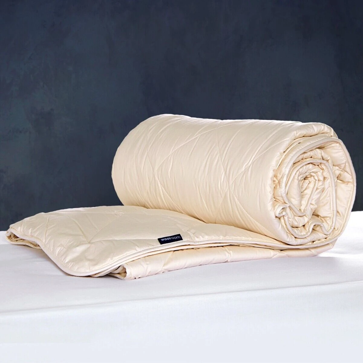 Drift off under a cloud of luxury with this Wool Room medium-size, organic washable wool duvet. Create the perfect sleep sanctuary with the natural hypoallergenic and temperature regulating benefits of wool. Wool Room traceable wool quilts give you peace of mind that your product is made sustainably and ethically. These duvets are super soft and cozy to make sure you get the best night sleep, try it out for yourself and discover the beauty of wool.