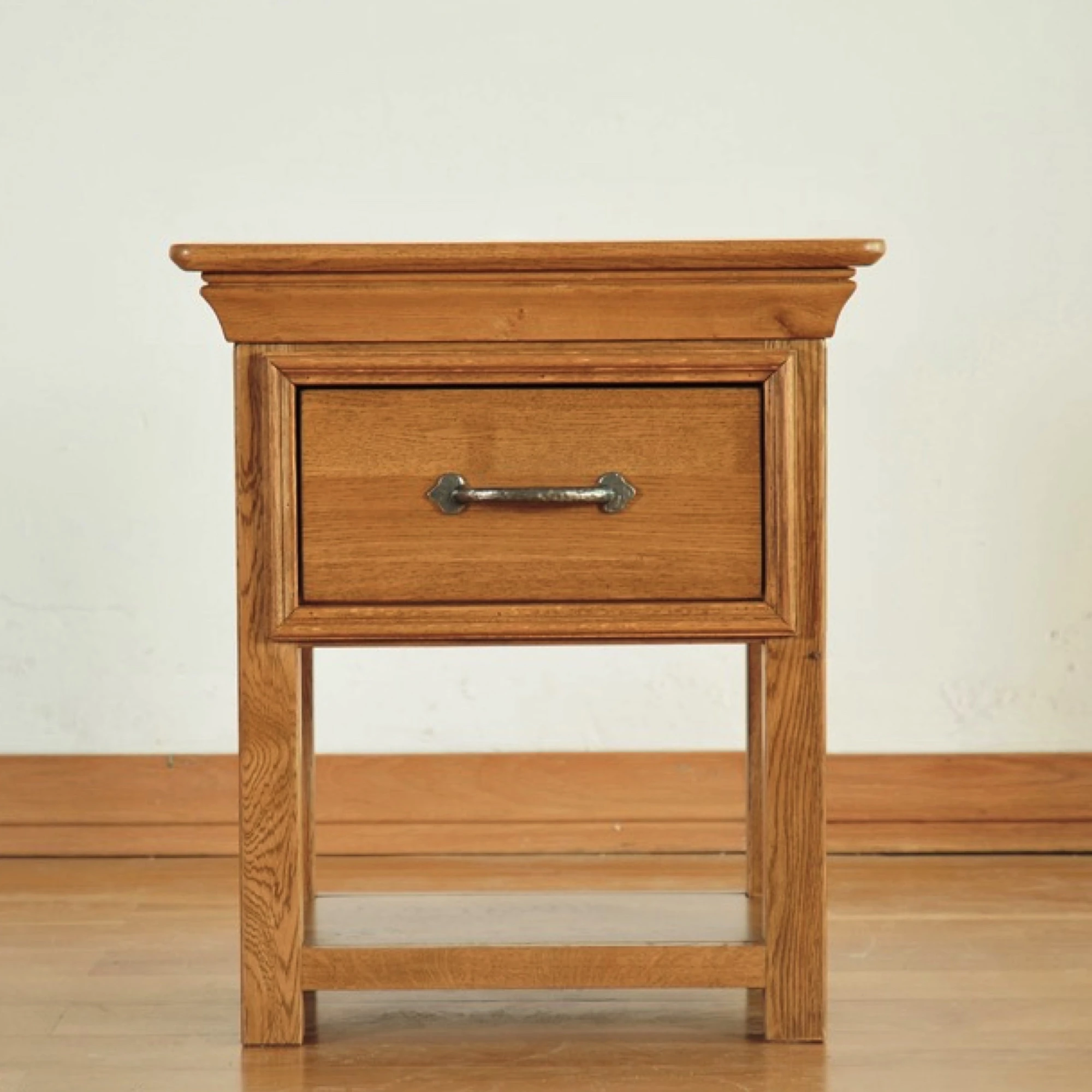 Made with solid American white Oak, this beautiful 1 drawer bedside table complements the Annecy bedroom set perfectly.