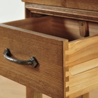 Dovetail joints with tongue and groove panelling for a solid finish. Beading and panelling to finish with extra attention to detail in the hand hammered bronzed handle