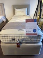 This Clearance VISPRING Shetland divan set is available in gem cream fabric, medium tension and includes a free matching headboard. The base has been upgraded from the standard Prestige model to the Sovereign base with extra springs and tufts for the upholstery.
