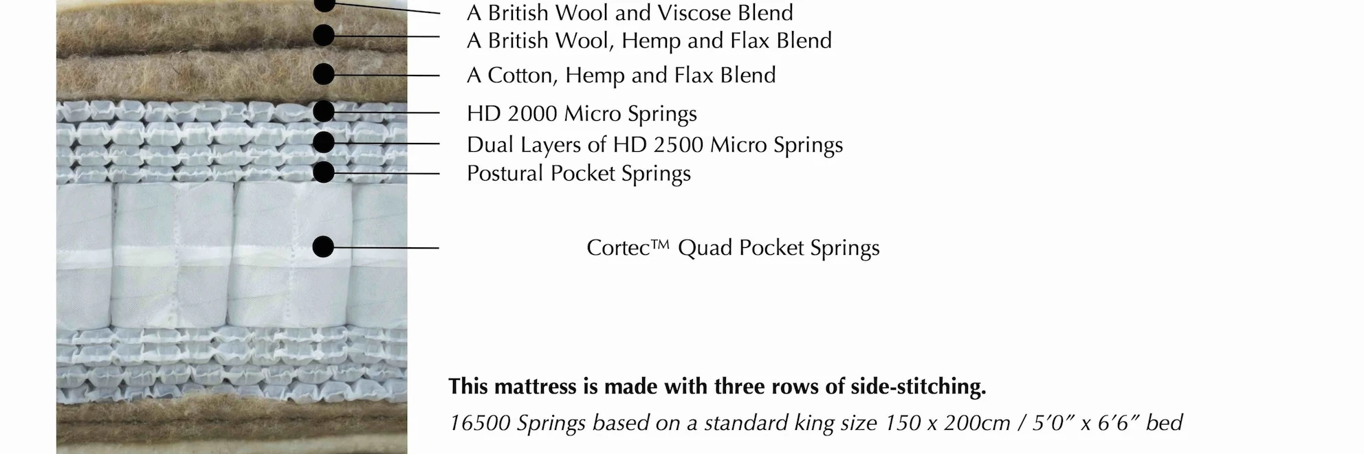 • Mattress pocket spring count: 16500 (in a standard kingsize 150 x 200cm mattress)