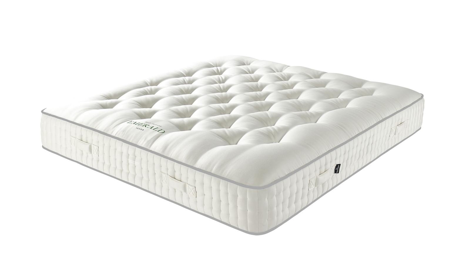 With layers of blended British wool and viscose, a British wool, hemp and flax blend and a cotton, hemp and flax blend. The Emerald Divan from Harrison Spinks features 16,500 award-winning springs, including Cortec™ Quad spring system, multiple layers of HD 2,000 Micro, HD 2,500 Micro springs and Posturfil pocket springs. With an in-house woven FR chemical treatment-free mattress cover and three rows of side stitching, this Seasonal Turn mattress has a warming wool winter side and cooling cotton summer side.