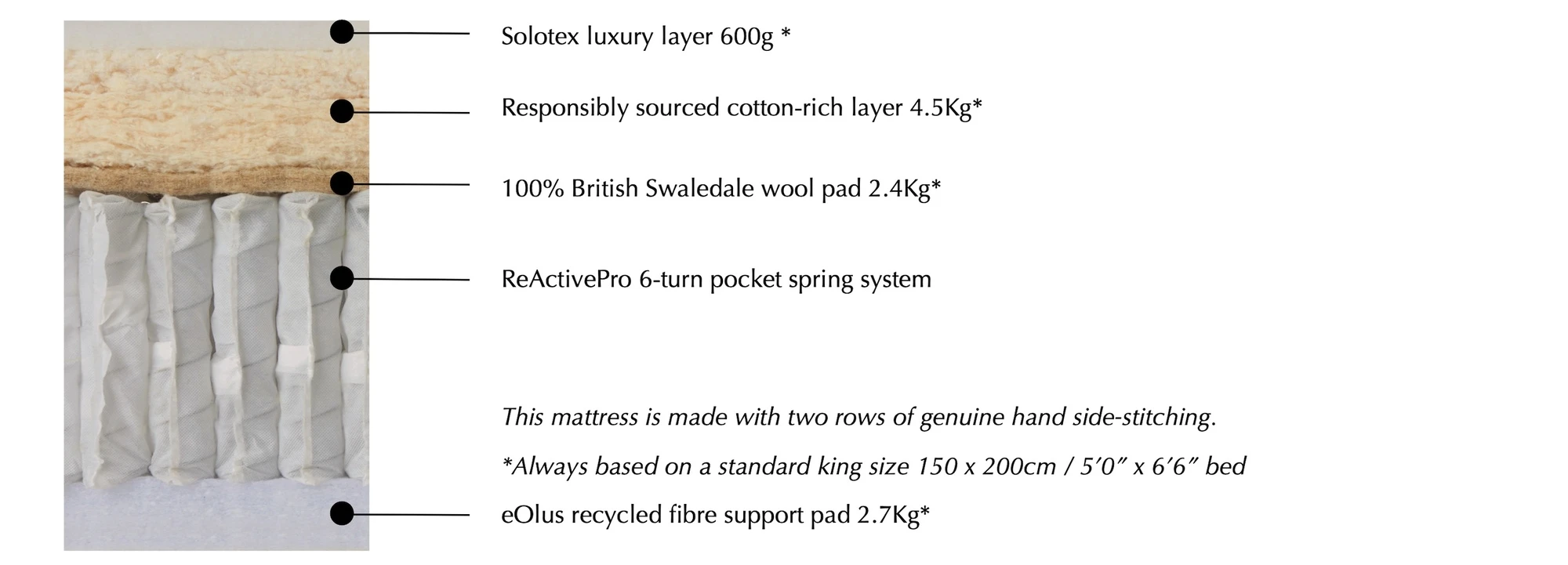 - Mattress upholstery: Solotex™ - Cotton - Swaledale wool