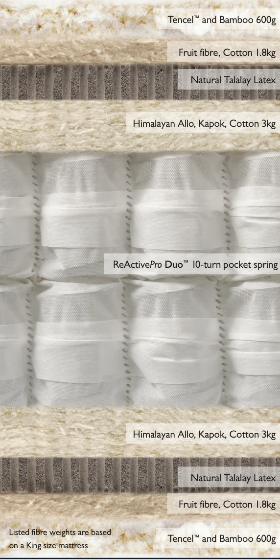 A stunning range developed with Eden Project utilising some of the most sustainable and natural plant based fibres on the planet such as Kapok and Allo along side luxurious Talalay Latex for a more sumptuous feel.