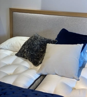 Please get in touch if you'd like to find out more about this option, the design is pictured in a standard height - select your desired width from the menu and the specification and dimensions will show in the tab below. The headboard also comes in a statement height for a small additional cost and if you wish, can be made to any height to suit your taste. Give our team a call to get a personalised quote.