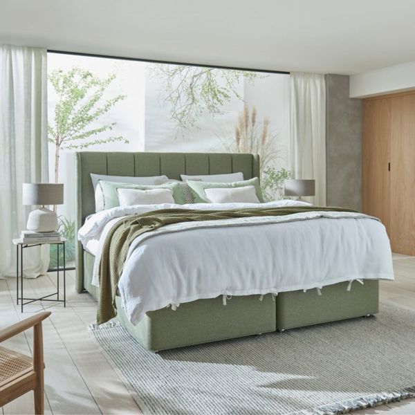 Please note this headboard is not compatible with our 4-drawer divan bases as the winged side do not allow the base's head end drawers to open. Our 2+2 continental drawer option would be perfect as these would open without the headboard blocking access.
