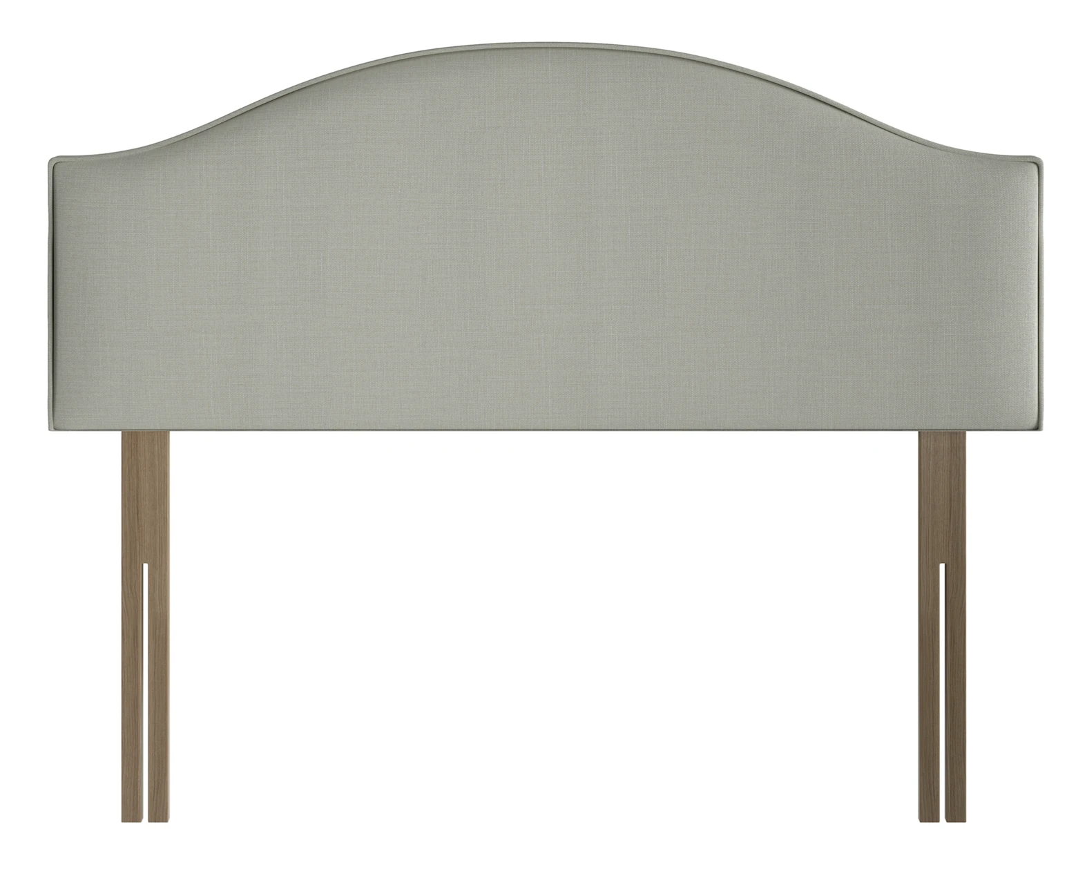 A beautiful wide arched headboard with a piped edge that has a lower profile height. (Only available as strutted)