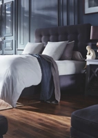 The Vispring Achilles headboard. A modern interpretation of the buttoned headboard with luxurious upholstery.
