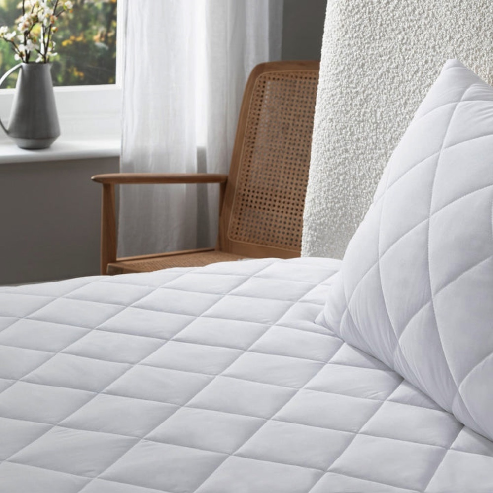 Crafted with only the highest quality materials, the super-soft microfibre fabric is treated with HeiQ Allergen* Tech to combat allergens, while the microfibre filling provides an additional layer of comfort. This hypoallergenic mattress protector is designed for home washing and is durable for over 20 washes.