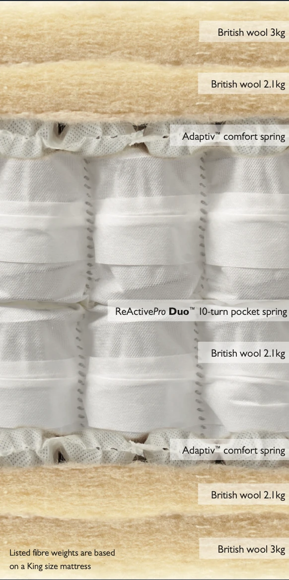 • Mattress pocket spring count: 10-turn ReActivePro Duo™ with Triple Edge Protection™