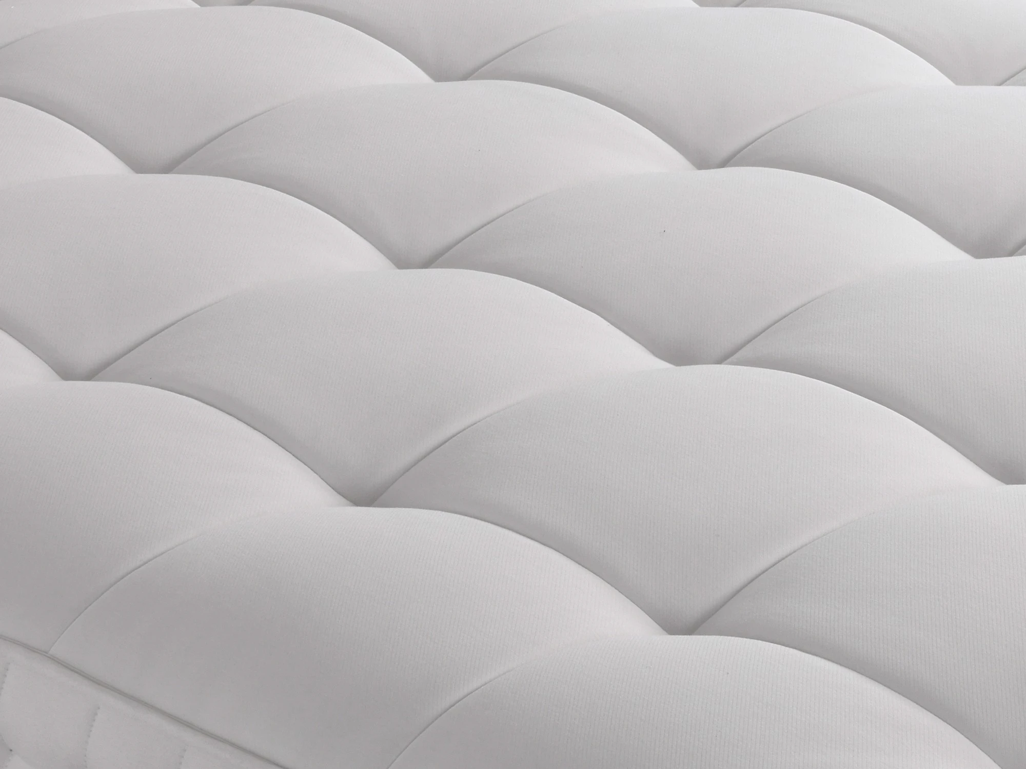Our flagship NYX mattress the Bespoke Splendour 7000. This stunning deep quilted handmade mattress features a show-stopping 7000 individual pocket springs over three layers in a medium comfort grade. The impressive mattress features layer after layer of breathable natural soft British lambswool, cotton, pashmina and alpaca wool with soft bamboo on both sides of the triple layer luxury pocket sprung mattress. Cotton creates a cosy and inviting feel and combined with luxury pashmina and alpaca wool, this bespoke mattress with the deep quilting and internally tufted upholstery for durability will surely impress. The high spring count with a supremely responsive triple deck spring layer adds to the exceptional comfort as you lay across the mattress surface. The high specification helps make this mattress exceptional value for money and we'd recommend this option in a king size and above to really benefit from it's wonderful feel. Turn this mattress as much as you can to enhance the lifespan and comfort you get from it.