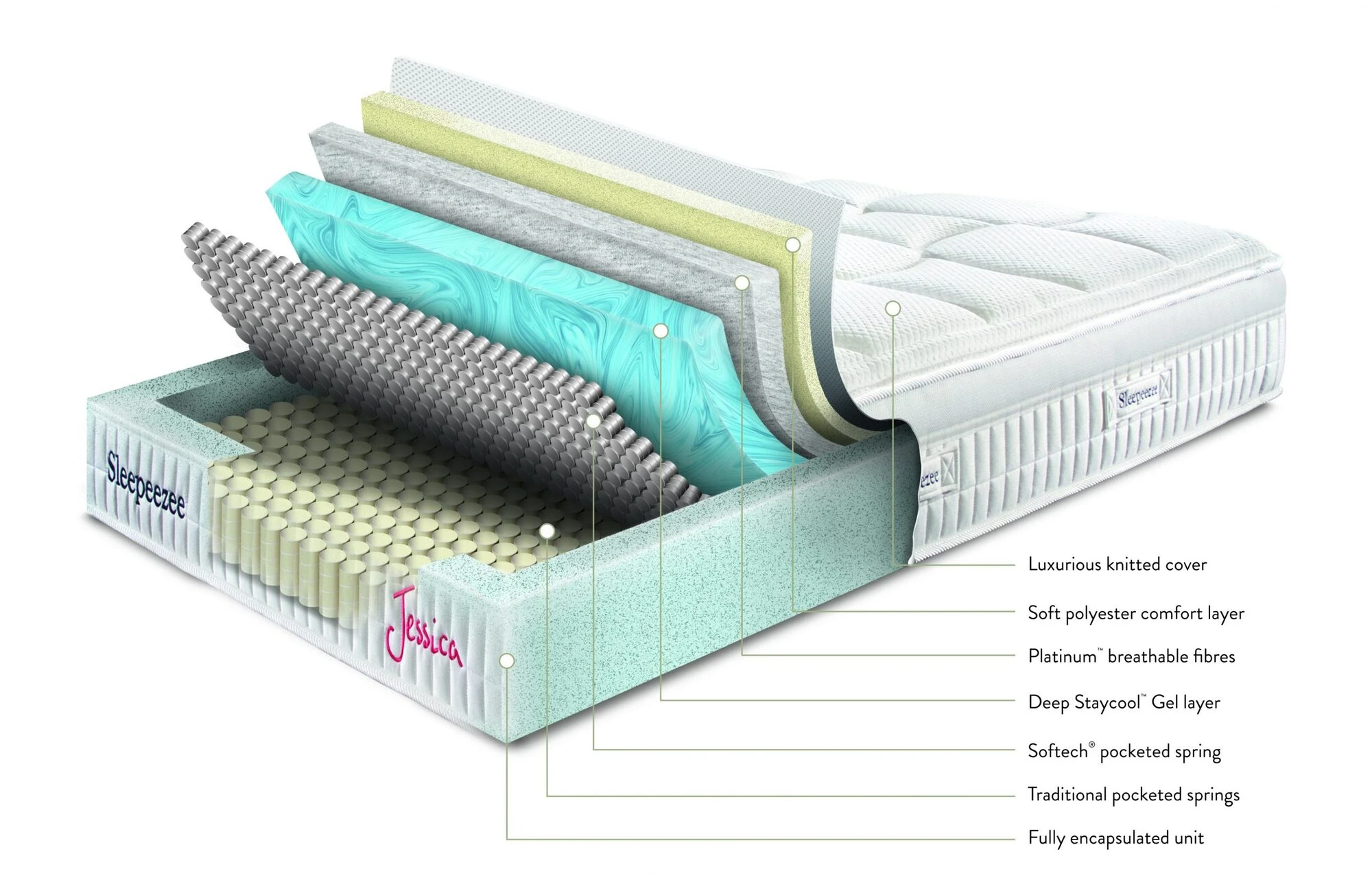 This winning combination of exceptional comfort and support makes the Jessica Mattress from Sleepeezee a gold-medal winner. It’s won its own awards too, voted Which? Best Buy 2020. The complex design is a combination of 1800 individual springs in the standard king size version, along with layers of memory foam for extra support, and StayCool™ Gel, which manages your body temperature more efficiently and helps you stay cooler as you snooze.