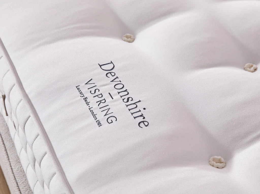 We Recommend; Vispring Devonshire Divan. The Devonshire mattress has been designed to rest perfectly on the Vispring Wool De Luxe pocket sprung divan base. This sprung divan base helps the mattress springs work to their full potential giving you the best comfort and support possible.