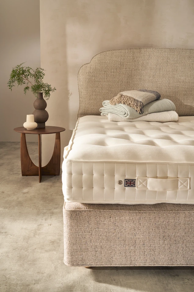 The Vispring Lana special edition bed is exclusive to The Bed Specialist. Crafted by hand, Lana is filled with a sumptuous blend of locally sourced Exmoor Horn wool, cotton and Tencel – a supremely durable and sustainable fibre, produced from tree pulp along with durable horsetail for added plump and support.