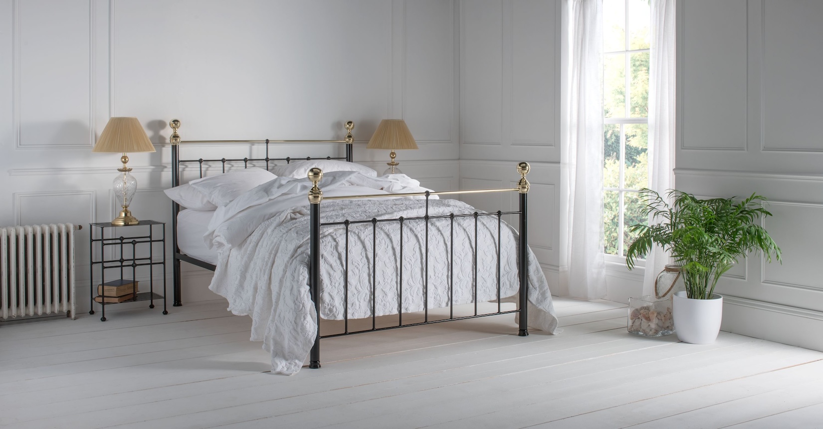 The Albert brass bed offers a simple heritage design with a touch of brazenness. It combines the timeless, restrained design of an antique original with bolder brass finials for a bed that makes itself heard without shouting.