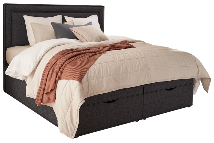This Vispring Europa Ottoman storage base is a stunning example of quality craftsmanship paired with functionality. The Europa Ottoman divan base features an end-opening lid that easily and gently lifts up to reveal ample storage space within a tailored and aesthetically appealing interior. It is an ideal divan for those spaces where extra storage is an absolute must and you get no compromise on the luxury support you get from the best pocket sprung divans.