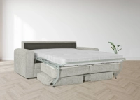 This sumptuous sofa has a really intuitive design where the cushions neatly store under the sofa, remaining attached to the frame for ease of use.  The seat is very comfortable, the frame is solid and well constructed and the mattress options are very high calibre.