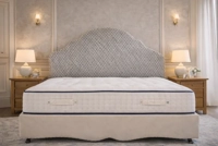 The Queen Anne Renaissance design has a gently curved side rail and foot-end with a statement headboard that is beautifully sculpted. Pictured here in a custom fabric which is not part of the standard Enchanted House swatch If you would like to provide your own fabric for the bed please contact us for a personalised quote. Available in a wide selection of luxury fabrics.