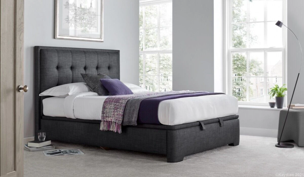 The Falstone Ottoman upholstered bed with headboard is classically styled with a modern twist. There's a cleverly concealed spacious floating ottoman storage area hidden in the bed's base.
