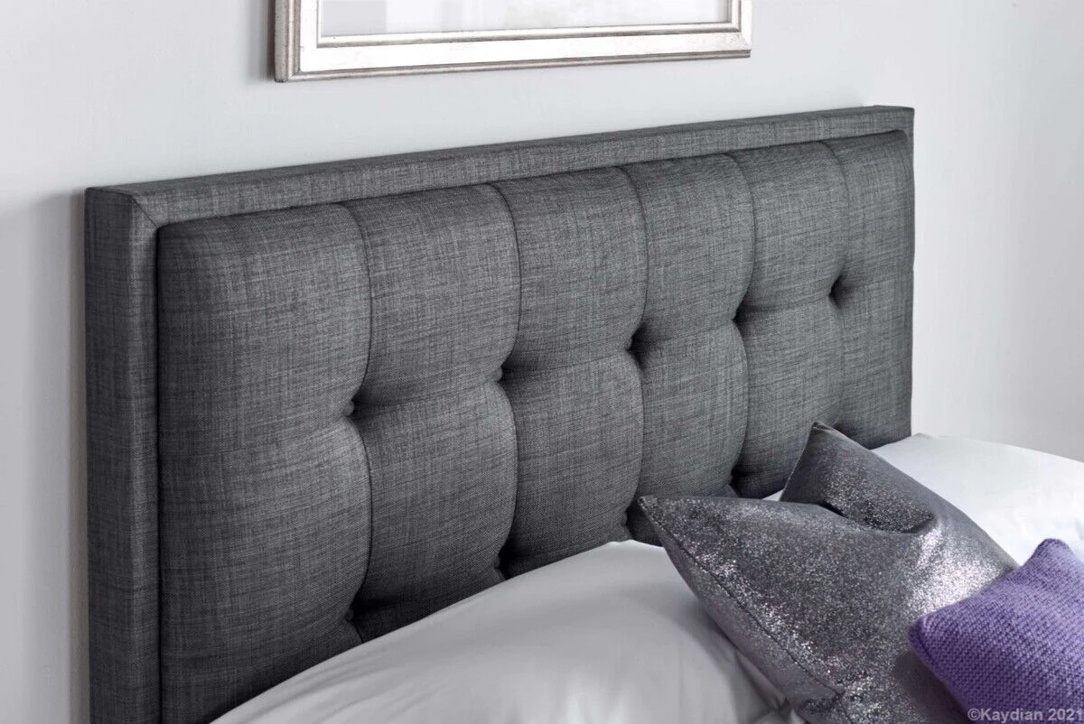 This bed has a lovely framed border headboard with neatly finished padding and plenty of storage space