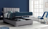 The Medburn Ottoman bed ..... A beautifully styled Ottoman lift up storage bed with modern vertical panelled headboard and a newly designed curved footend and integrated foot.