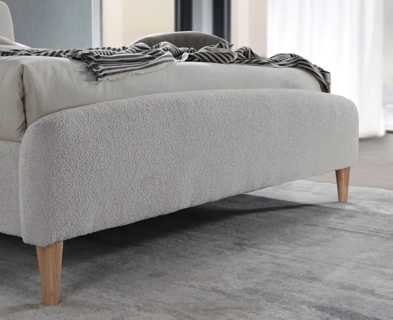 Contemporary yet full of charm, the Treviso Bed Frame is a stylish addition to any bedroom. Its gently curved headboard and footboard are upholstered in luxuriously soft teddy bear fabric, beautifully paired with light wood feet. The sprung slatted base adapts to pressure points, offering natural support and enhanced comfort, making Treviso as practical as it is inviting.