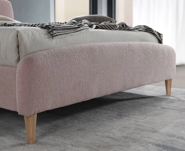 Contemporary yet full of charm, the Treviso Bed Frame is a stylish addition to any bedroom. Its gently curved headboard and footboard are upholstered in luxuriously soft teddy bear fabric, beautifully paired with light wood feet. The sprung slatted base adapts to pressure points, offering natural support and enhanced comfort, making Treviso as practical as it is inviting.