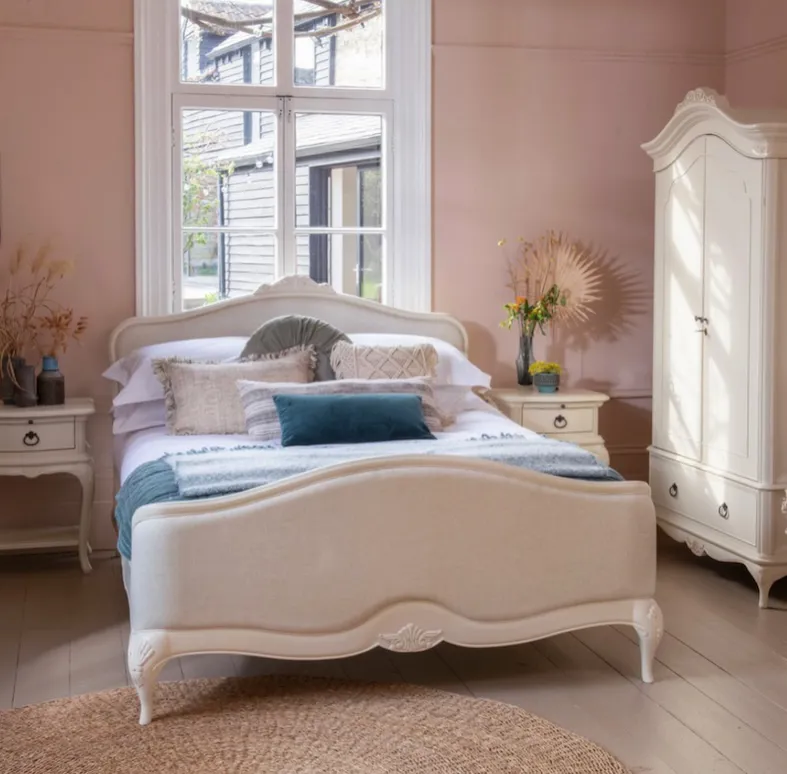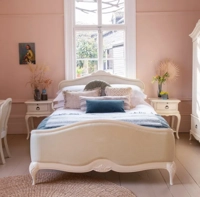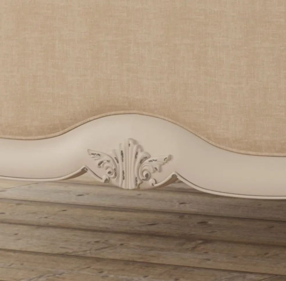 The Willis & Gambier Ivory Upholstered Bed Frame is available in three sizes and features a cream paint finish paired with luxurious cream fabric on both the headboard and footboard. Inspired by classic French design, it showcases exquisite carved detailing and gracefully shaped legs, creating a timeless and elegant centrepiece for any bedroom.