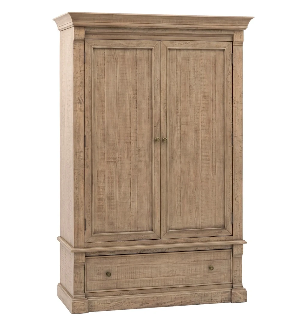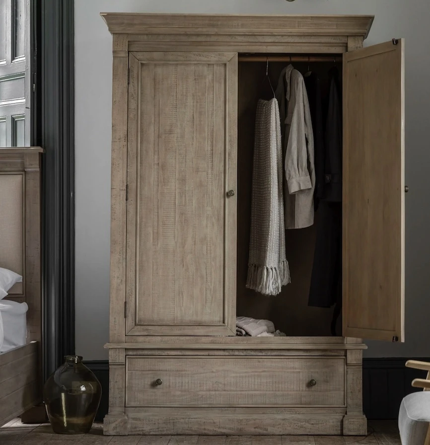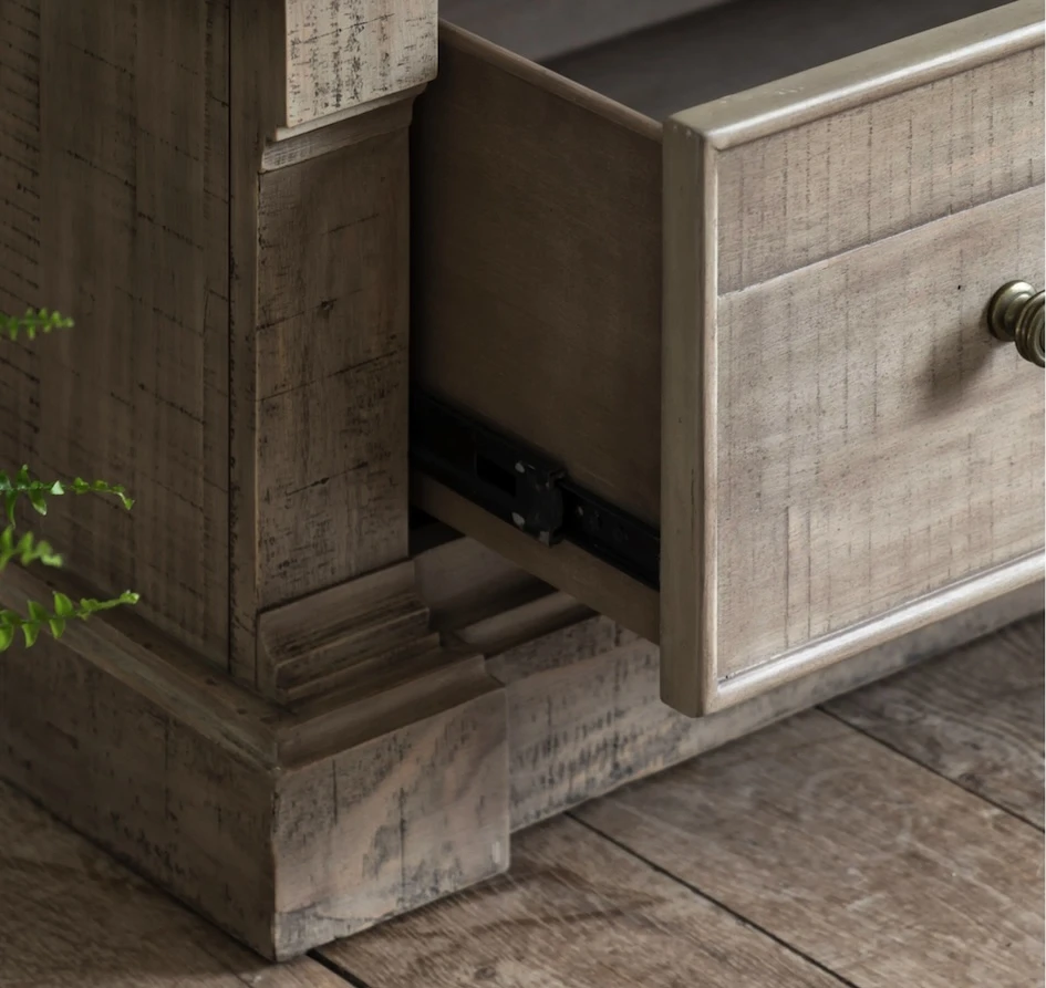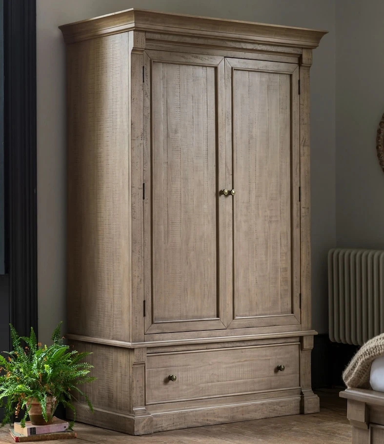 The Vancouver Wardrobe is a charming and practical addition to any bedroom. Its weathered wood finish and simple design create a warm and inviting atmosphere. The three drawers provide ample storage space for books, glasses, and other bedside essentials. Perfect for adding a touch of rustic charm to your space.