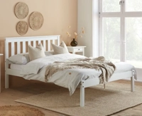 Exquisitely designed in a traditional Shaker style, the Cosmo Bed Frame offers timeless heritage appeal. Crafted from solid pine, it’s available in either an antique pine varnish, grey or an elegant ivory painted finish. A solid slatted base provides firmer support while allowing air to circulate beneath the mattress.