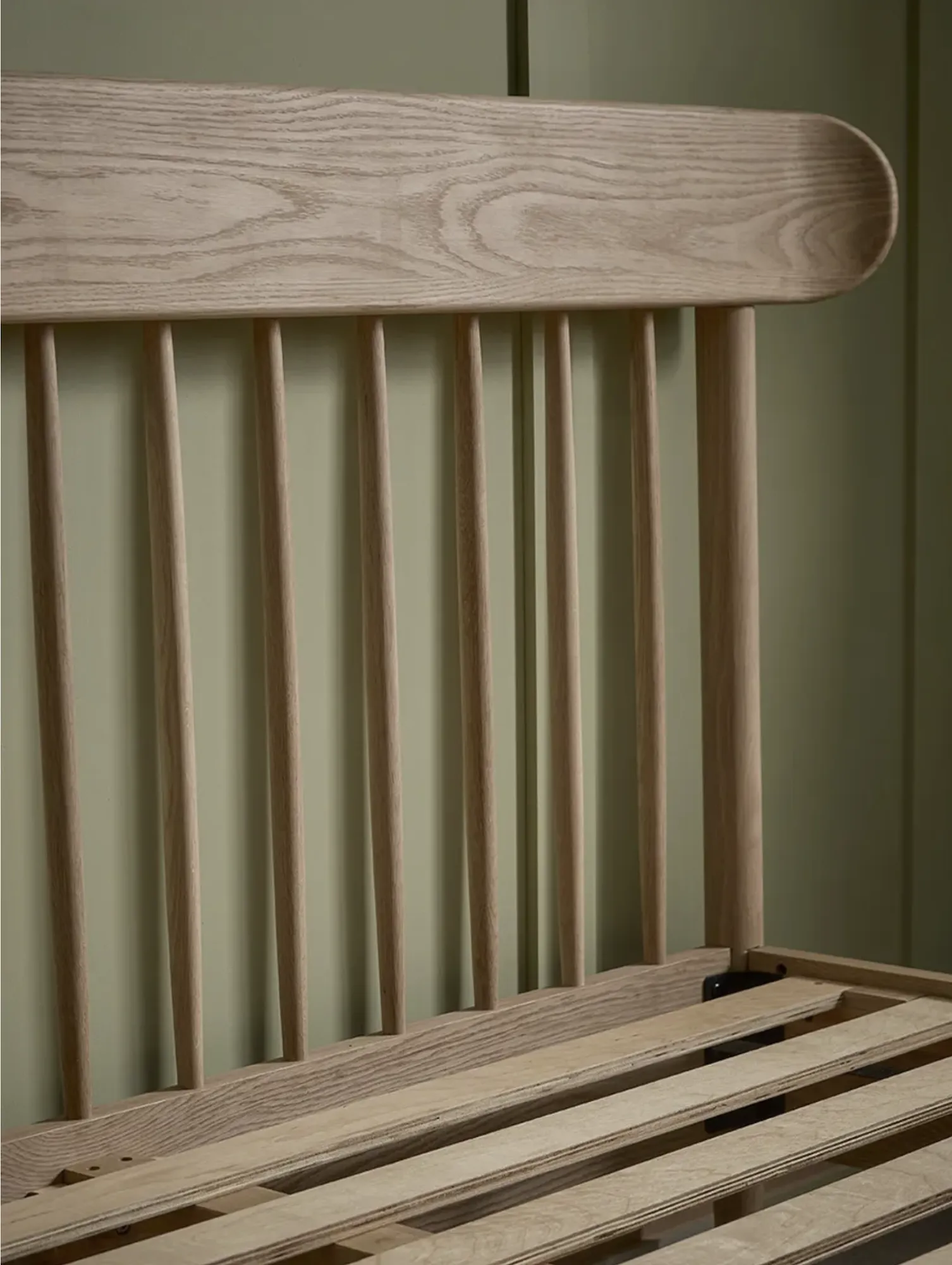 The charming Hatfield Spindle bed frame features a classic spindle design that adds a touch of elegance to any bedroom. Its solid oak frame is both durable and aesthetically pleasing. The natural finish complements a variety of interior styles.