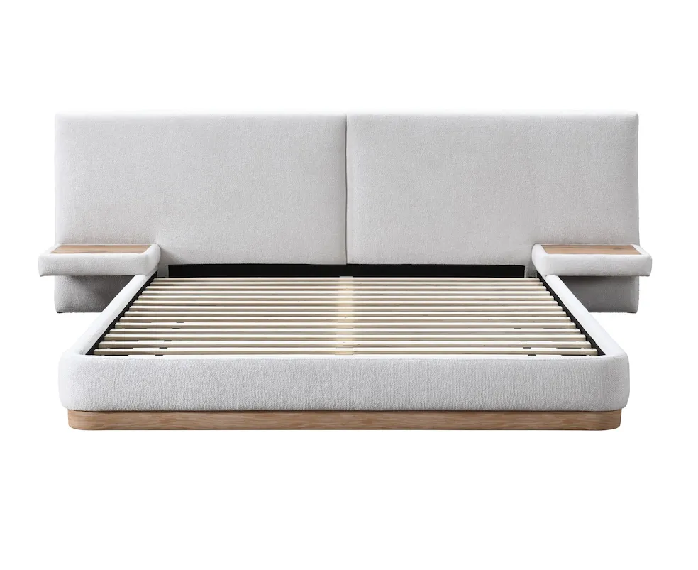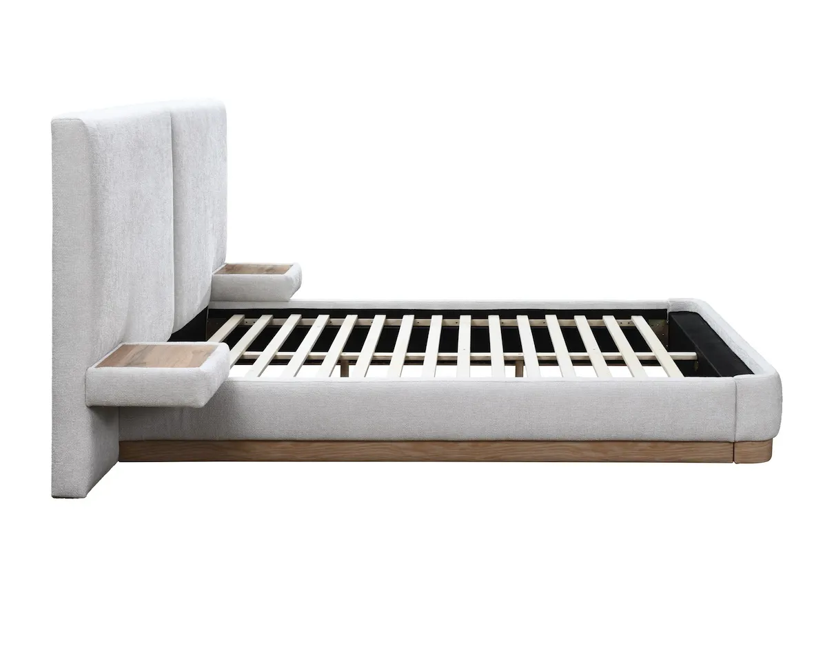The Como Bed blends modern practicality with refined elegance. Upholstered in soft fabric with a faux wood-effect trim, its tall panelled headboard adds architectural interest while maintaining warmth and comfort. With clean lines and understated luxury, Como complements both classic and contemporary interiors, offering a stylish and distinctive centrepiece for any bedroom.